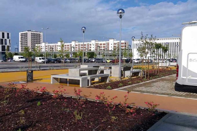 A zona para autocaravanas está equipada com uma Área de Serviço de Autocaravanas (ASA), que permitirá o depósito de águas sujas e o reabastecimento de água potável.